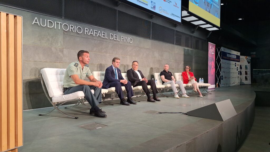 De izquierda a derecha, José Luis González, teniente coronel de la Guardia Civil; Fernando Mairata, presidente de la Asociación de Peritos de Nuevas Tecnologías (PETEC); Alan Archila, experto internacional en Identidad Digital, CEO de REACT, Director de ONID Spain, Agente Costa Rica de NXP Semiconductors; Miguel Ángel de Castro, experto internacional de ciberseguridad en CrowdStrike; y Sonia Fernández Palma, analista de Inteligencia, formadora y Certified Cyber Security Professional.