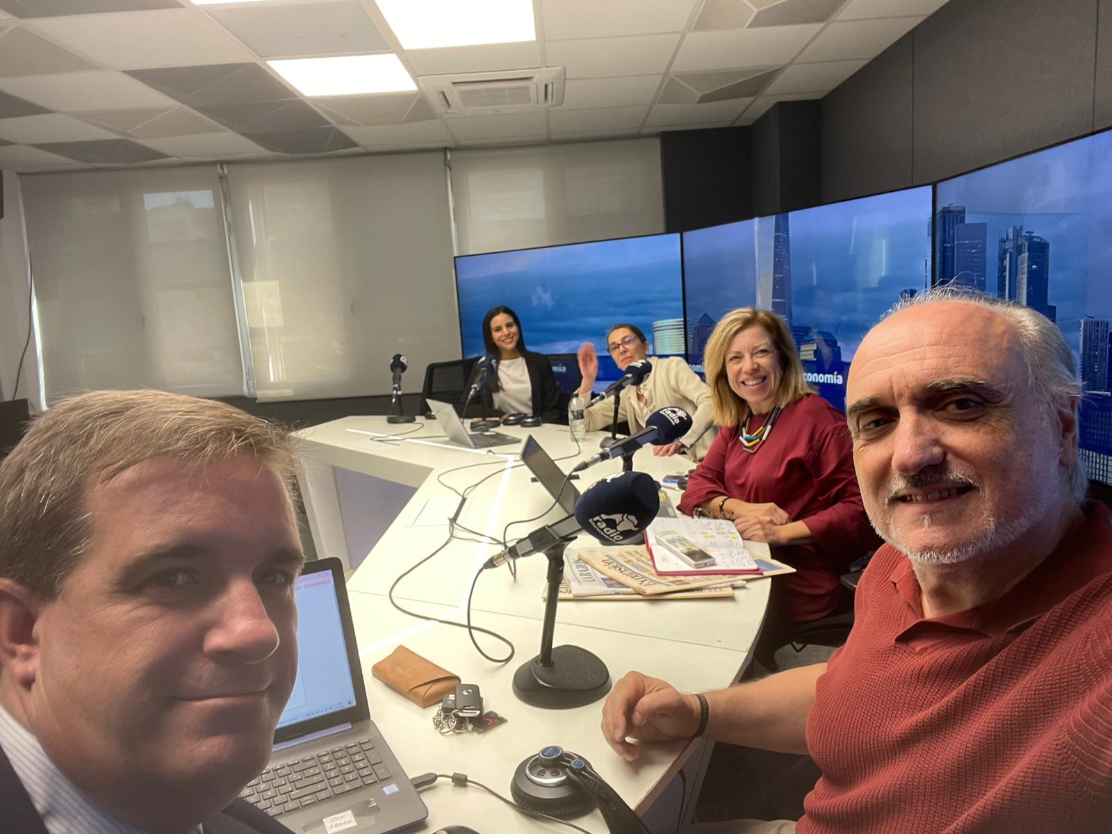 De izquierda a derecha, Devorah Buchelli (ReactID), Sonia Fernández Palma (Falco Insigth), Susana Criado (Radio Intereconomía), Salvador Molina (Foro ECOFIN y MAD FinTech) y Fernando Mairata (DLTcode y PETEC). Todas y todos están vinculados a la comunidad C1b3rwoman.