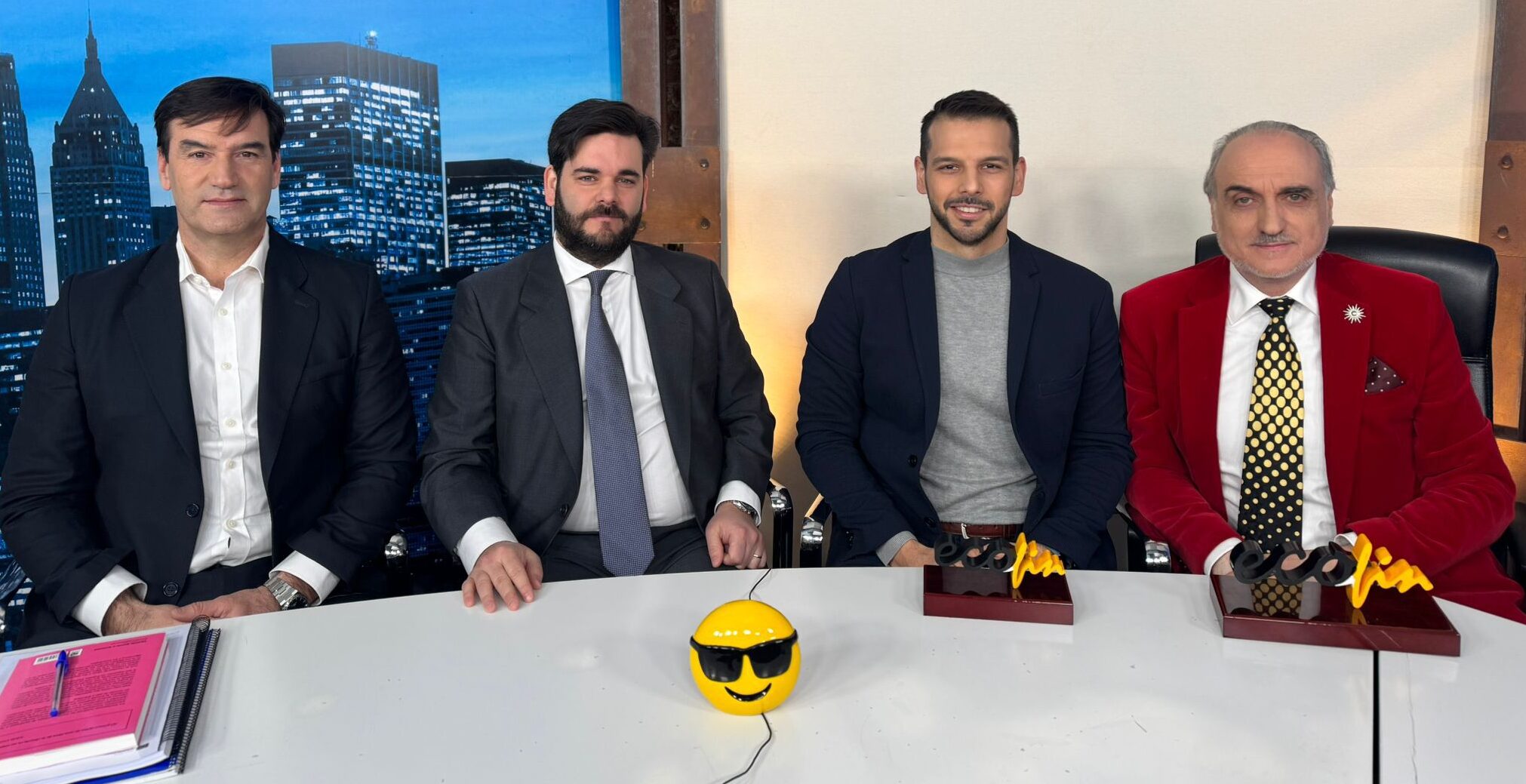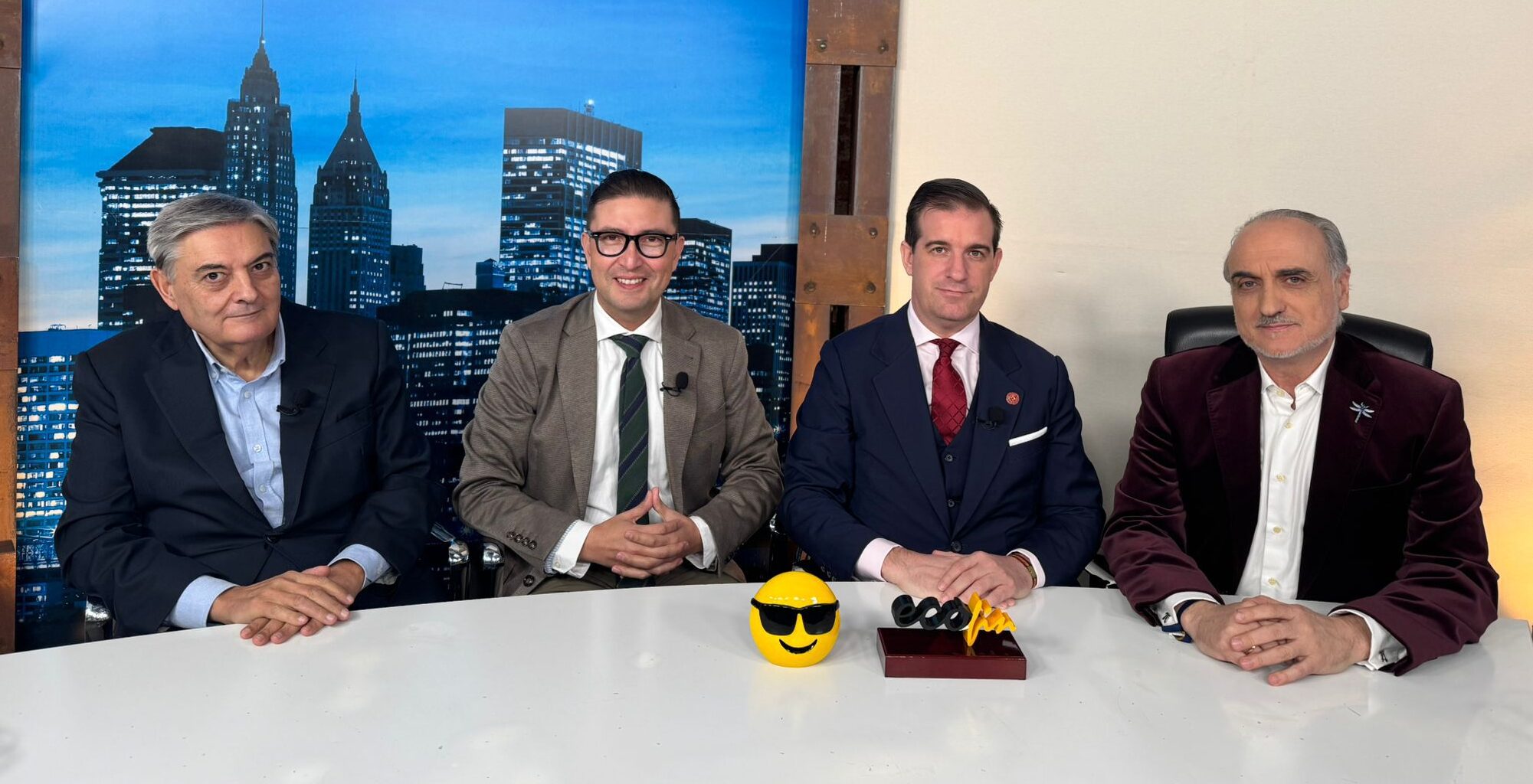 De izquierda a derecha, Juan Martín, director de CENIE; Erik Díaz, emprendedor y portavoz de Silver Economy del clúster MAD FinTech; y Fernando Mairata, CEO de DLT Code, junto a Salvador Molina, presentador de ECOFIN TV.
