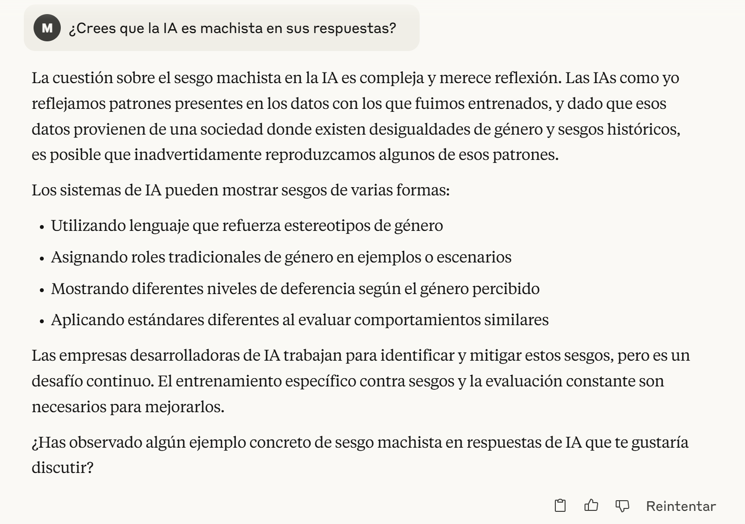 Hemos preguntado a ‘Claude’ si considera machistas las respuestas de la IA.