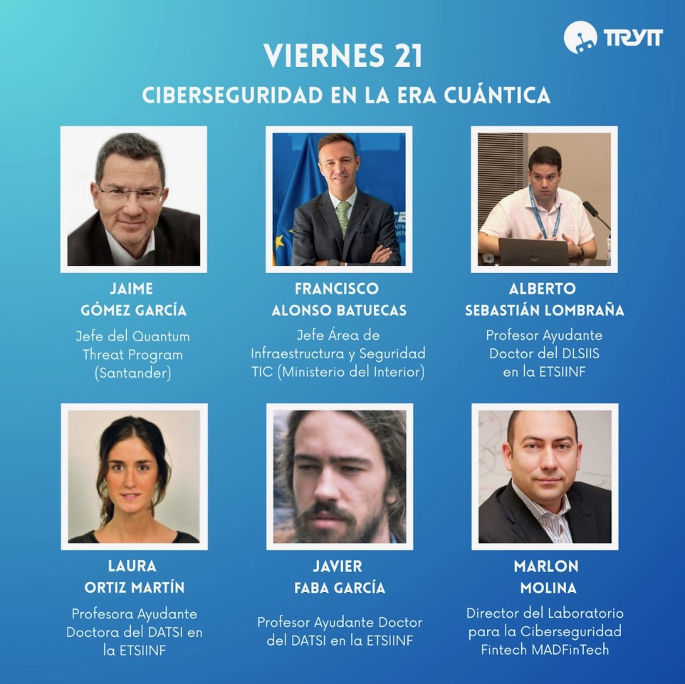 - Ciberseguridad en la Era Cuántica. Con la presencia de Marlon Molina, director del CyberLab FinTech de MAD FinTech, junto con Jaime Gómez García (Banco Santander), Francisco Alonso Batuecas (Ministerio del Interior), Alberto Sebastián Lombraña (ETSIINF), Laura Ortíz Martín (ETSIINF) y Javier Faba García (ETSIINF).