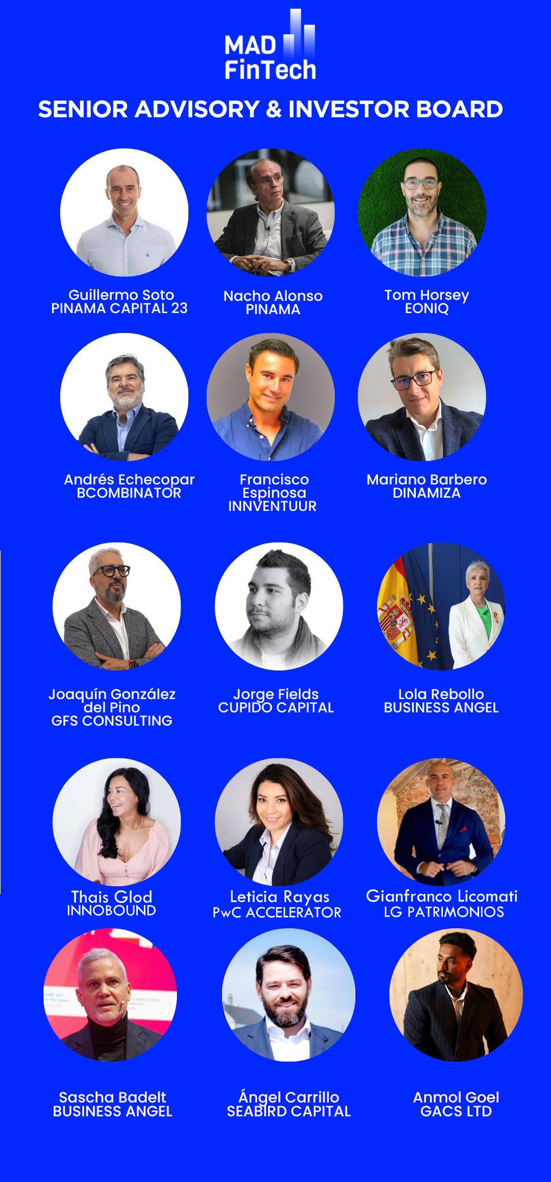 En esta primera etapa, los miembros del Senior Advisory & Invest Board de MAD FinTech, que nace con una clara vocación internacional al integrar a inversores con intereses en varios países de Europa, Oriente Medio y, sobre todo, de Iberoamérica, serán entre otros los siguientes: