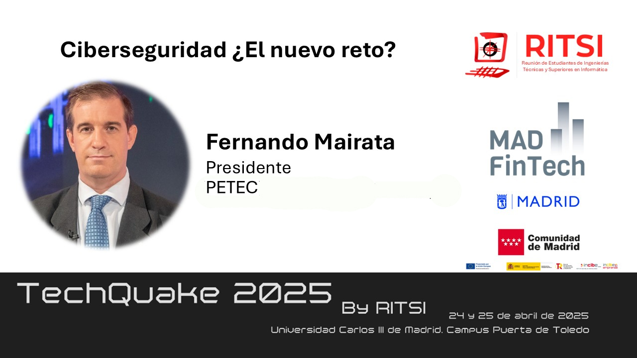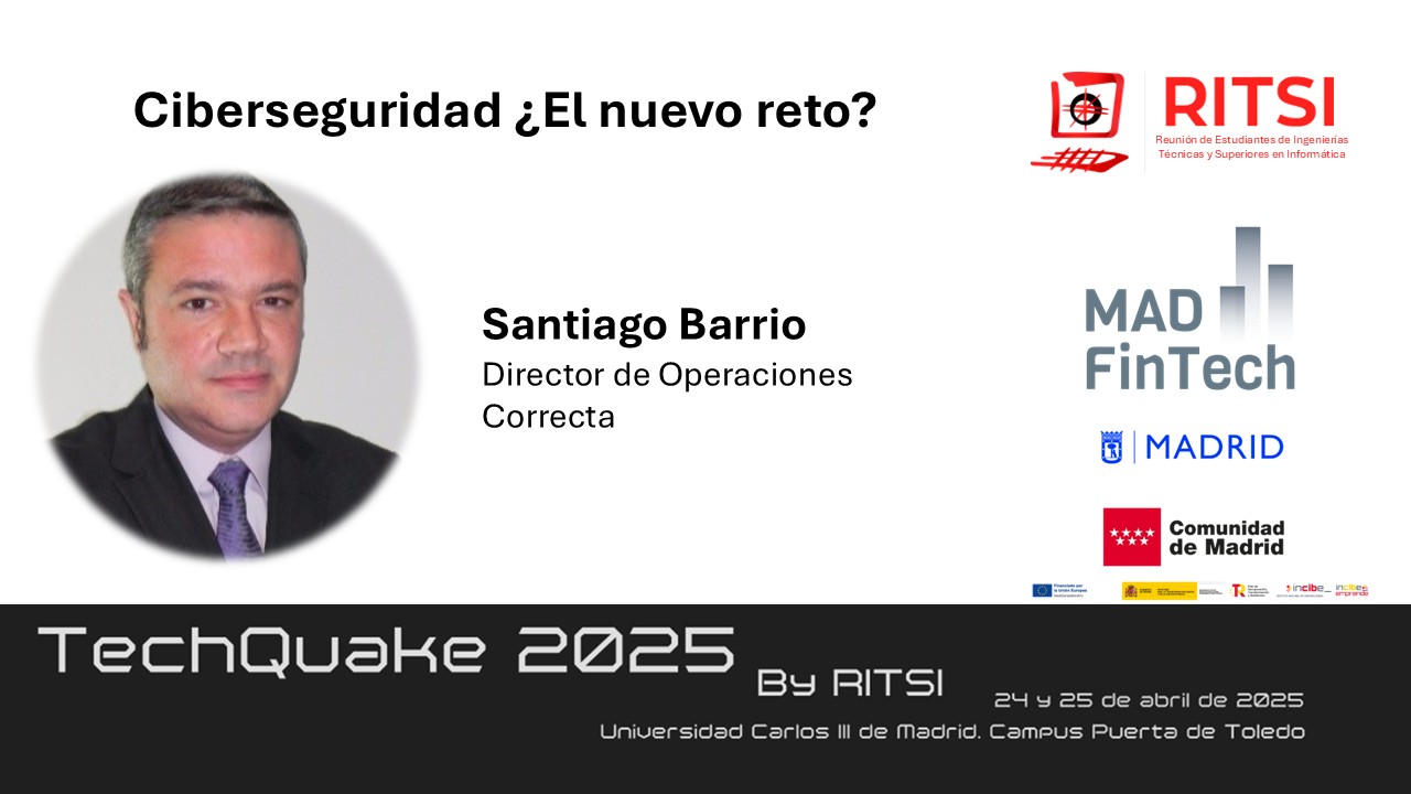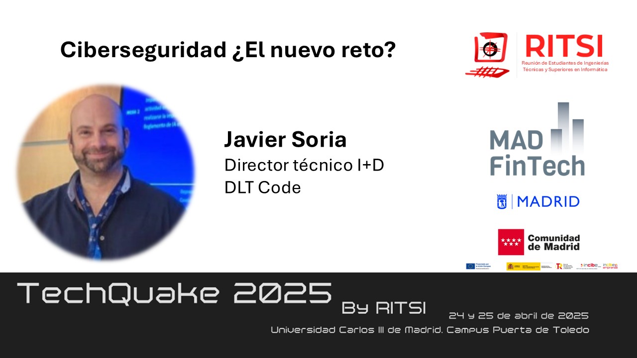 La Ciberseguridad será uno de los temas que llevarán expertos del clúster MAD FinTech al TechQuake los próximos días 24 y 25 de Abril en la Universidad Carlos III en la Puerta de Toledo, que es la nueva marca del congreso de RITSI, un evento estatal con 14 ediciones multitudinarias a sus espaldas. Fernando Mairata, Javier Soria y Santiago Barrios son algunos de los expertos de DLTCode y MAD FinTech que estarán en la cita. Junto a ellos otros socios con otros temas.
