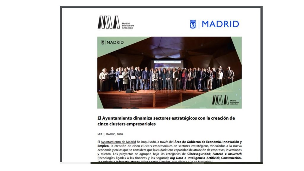 El clúster MAD FinTech comienza una campaña de comunicación internacional a inversores, empresas y capitales digitales a través de Madrid Investment Attraction (MIA). El organismo del Ayuntamiento de Madrid es el enlace habitual con entidades interesadas por implantarse en la capital de España.