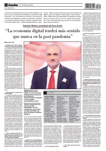 El presidente de Foro ECOFIN habló sobre el clúster MAD FinTech y predijo cómo será la economía post-coronavirus. “La economía digital tendrá más sentido que nunca”, afirmó. Salvador Molina, presidente de Foro ECOFIN, destacó en la entrevista que “la sociedad ha acelerado su proceso de digitalización” como respuesta inmediata a la crisis sanitaria que vivimos. […]