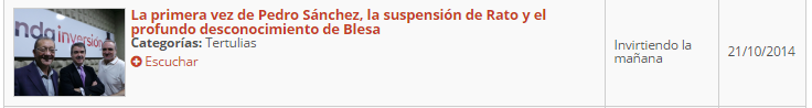 Salvador Molina, presidente de Foro ECOFIN, ha estado colaborando hasta el primer trimestre de 2015 en las tertulias del magazine matinal de Onda Inversión: ‘Invirtiendo la mañana’, un espacio dedicado a explicar la economía de una manera accesible y sencilla, además de trasladarnos las historias de empresas innovadoras en diferentes sectores, como el energético, las […]